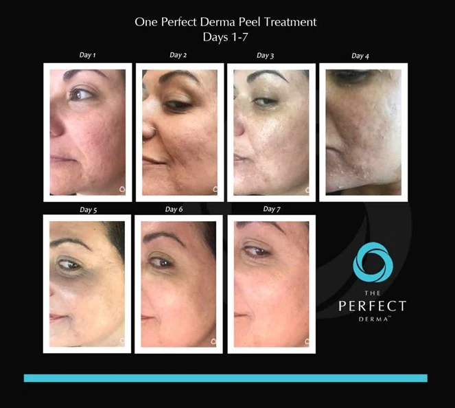 The Perfect Derma Peel combines powerful ingredients with effective acids to deliver outstanding results after one treatment. It is the only peel that includes the powerful antioxidant Glutathione, which lightens and brightens the skin, slows down the aging process and helps prevent wrinkles. This unique formula allows for an increase in lifting of fine lines and wrinkles as well as reducing hyperpigmentation including Melasma. The Perfect Derma Peel is a non-invasive, virtually painless treatment with only 2-4 days of peeling.